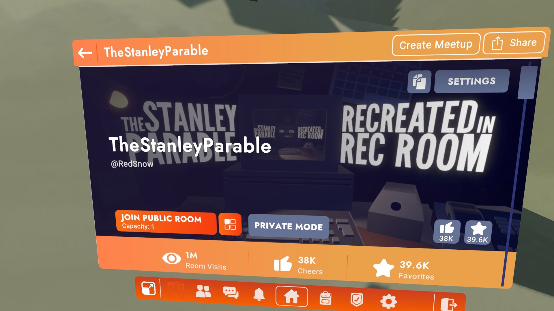 Plus, not only was I playing, but I was creating. I worked on several rooms, but the one I am most proud of is ^TheStanleyParable. It took an entire year, and the work of many team members, but we managed to recreate the entire game, by hand and faithfully, in CV1 and Maker Pen. Even the Serious Room and the Escape Pod. The game was a huge hit, was featured twice, and now has 1.5 million visits. The creations of players are the lifeblood of Rec Room, and for a long time, they did a lot of work to encourage builders to do their best work.
