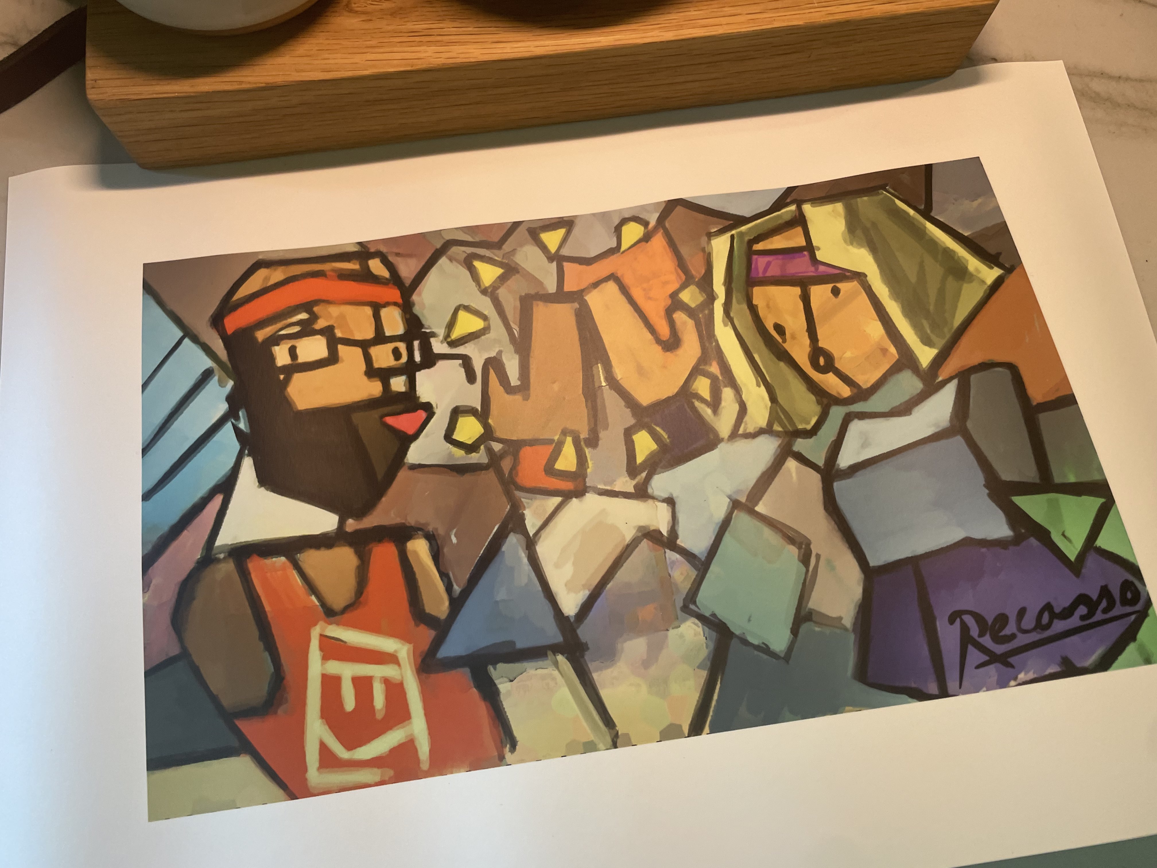 Gallery alt text: Toaster with rec room running on it, then an art print of a rec room high five, and a T-Shirt and Mug